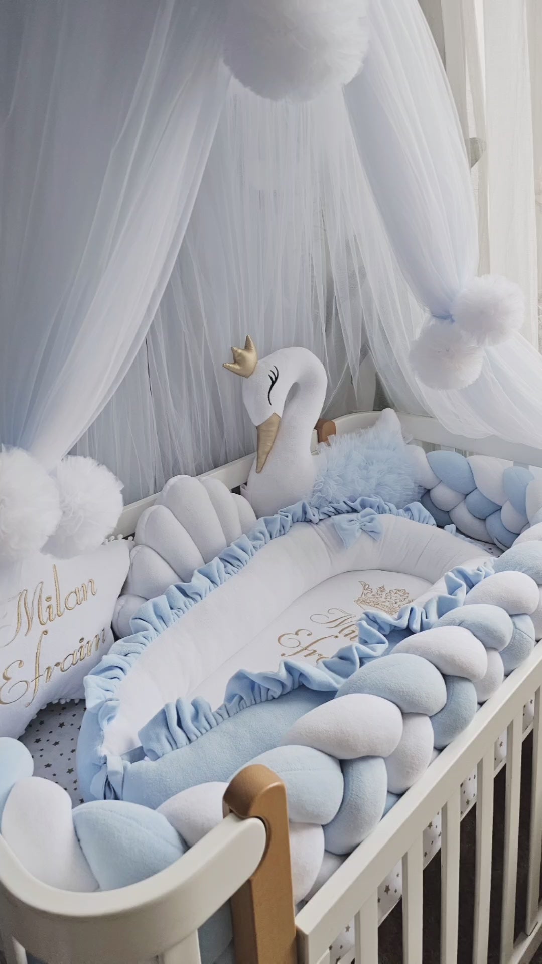 Dieses personalisierte Babybett-Set für Mädchen vereint erstklassige Qualität, sicheres Design und stilvolles Design. Jedes Teil ist liebevoll handgefertigt und kann mit dem Namen Ihres Babys personalisiert werden – für eine ganz besondere, persönliche Note.